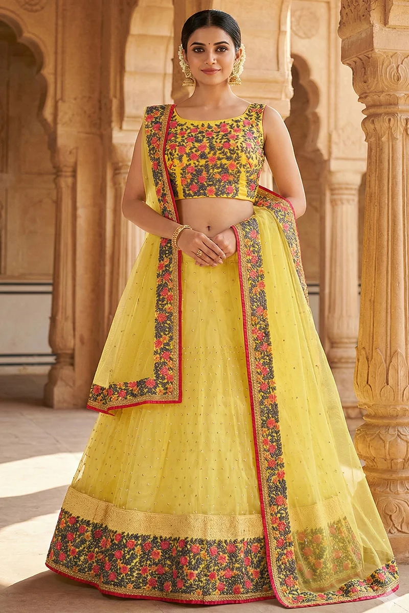 Fashion that express your character. Fashion that states your purpose of existence. Kekee presents yet another enchanting collection of stunning designs and aesthetic work this ceremonial season to flourish your shrungar with this magnificent range of Fashion Mantra Lehenga Collection. Additional 18% GST Applicable.Lehenga Flair 5.5 Mtr.