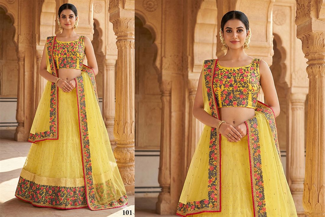 Fashion that express your character. Fashion that states your purpose of existence. Kekee presents yet another enchanting collection of stunning designs and aesthetic work this ceremonial season to flourish your shrungar with this magnificent range of Fashion Mantra Lehenga Collection. GST EXTRA.