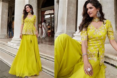 | Fabric | PREMIUM REAL ORGANZA SILK ( TRENDY WEDDING LOOK FRONT AND BACK EMBROIDERED TOP WITH PALAZZO AND EMBROIDERED DUPATTA ) |