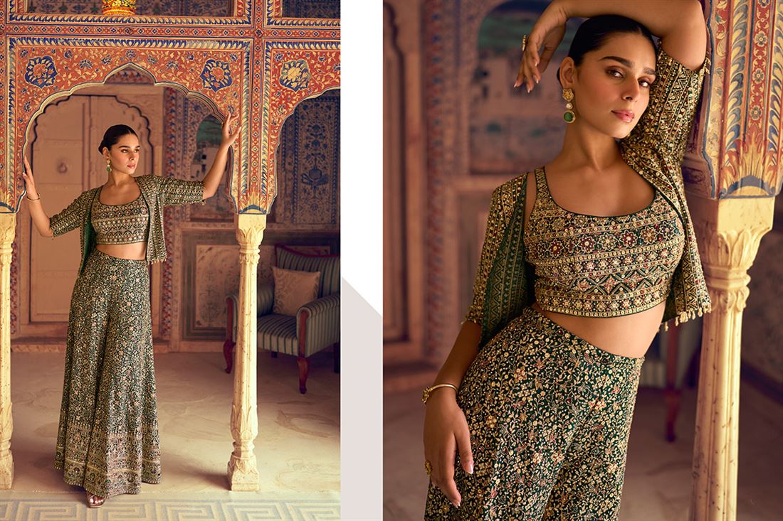 | Bottoms | REAL PREMIUM GEORGETTE ( FULL HEAVY LOOK EMBROIDERED SIROSKI ZARKAN FRONT AND BACK PLAZOO |