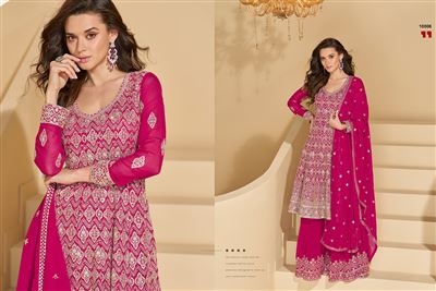 | Fabric | TOP/BOTTOM/DUPATTA :- REAL PREMIUM GEORGETTE ( FULL HEAVY LOOK EMBROIDERED TOP WITH EMBROIDERED PALAZZO AND DUPATTA ) |