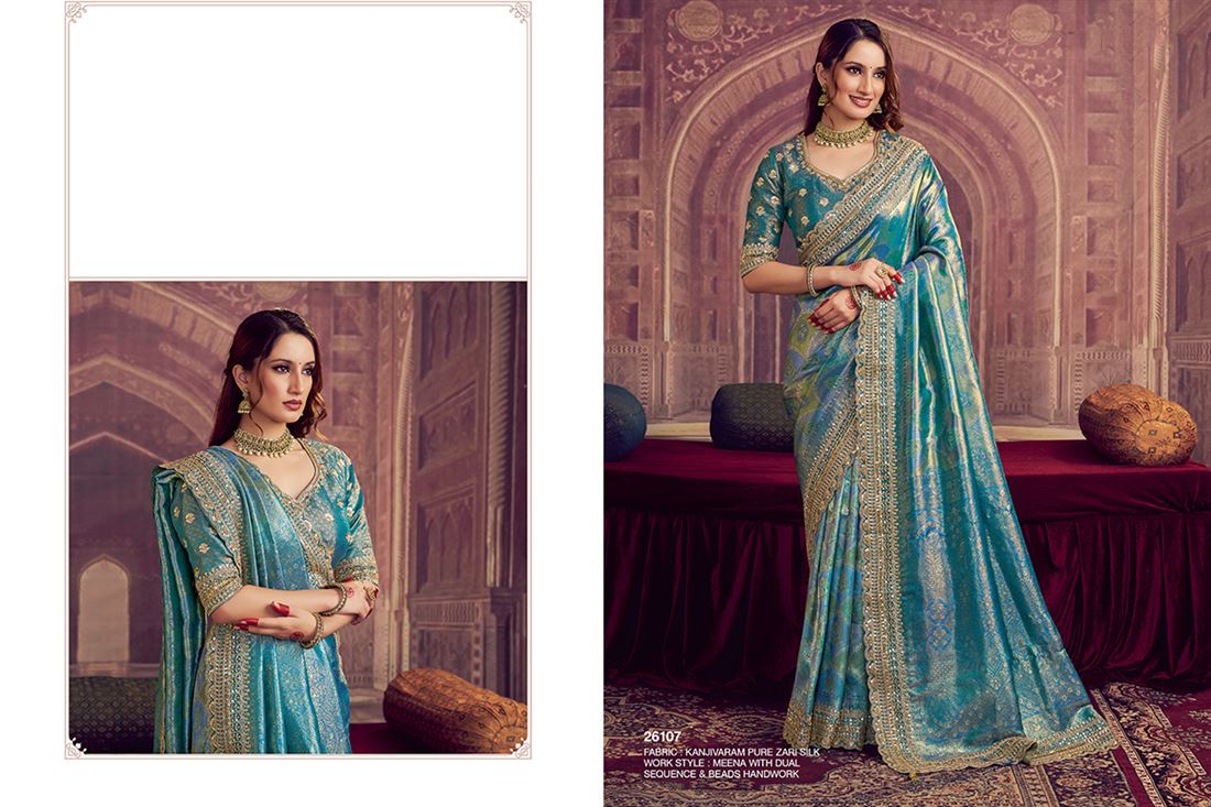 Fashion that express your character. Fashion that states your purpose of existence. Kekee presents yet another enchanting collection of stunning designs and aesthetic work this ceremonial season to flourish your shrungar with this magnificent range of AARADHYA DESIGNER SAREES COLLECTIONS. Additional 5% GST Applicable.
