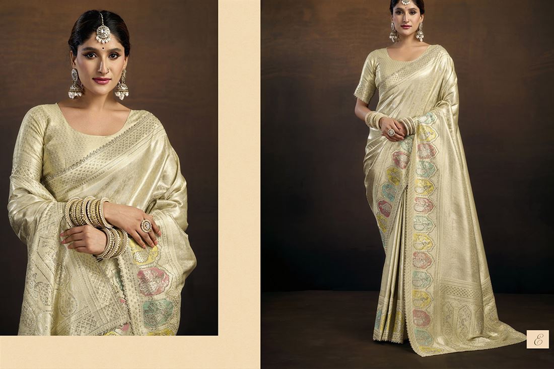 Fashion that express your character. Fashion that states your purpose of existence. Kekee presents yet another enchanting collection of stunning designs and aesthetic work this ceremonial season to flourish your shrungar with this magnificent range of SAKSHI JARKAN VOL-15 SAREES COLLECTIONS. Additional 5% GST Applicable.