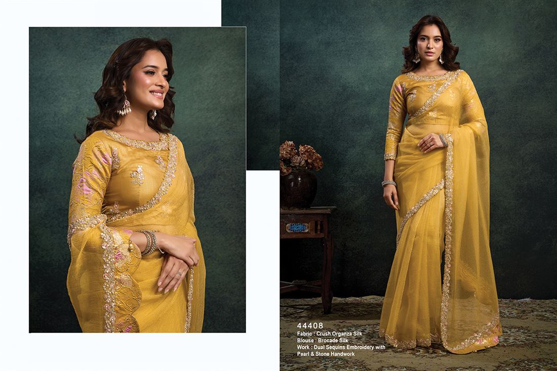 Fashion that express your character. Fashion that states your purpose of existence. Kekee presents yet another enchanting collection of stunning designs and aesthetic work this ceremonial season to flourish your shrungar with this magnificent range of RASIKA WEDDING WEAR DESIGNER SAREES COLLECTIONS. Additional 5% GST Applicable.