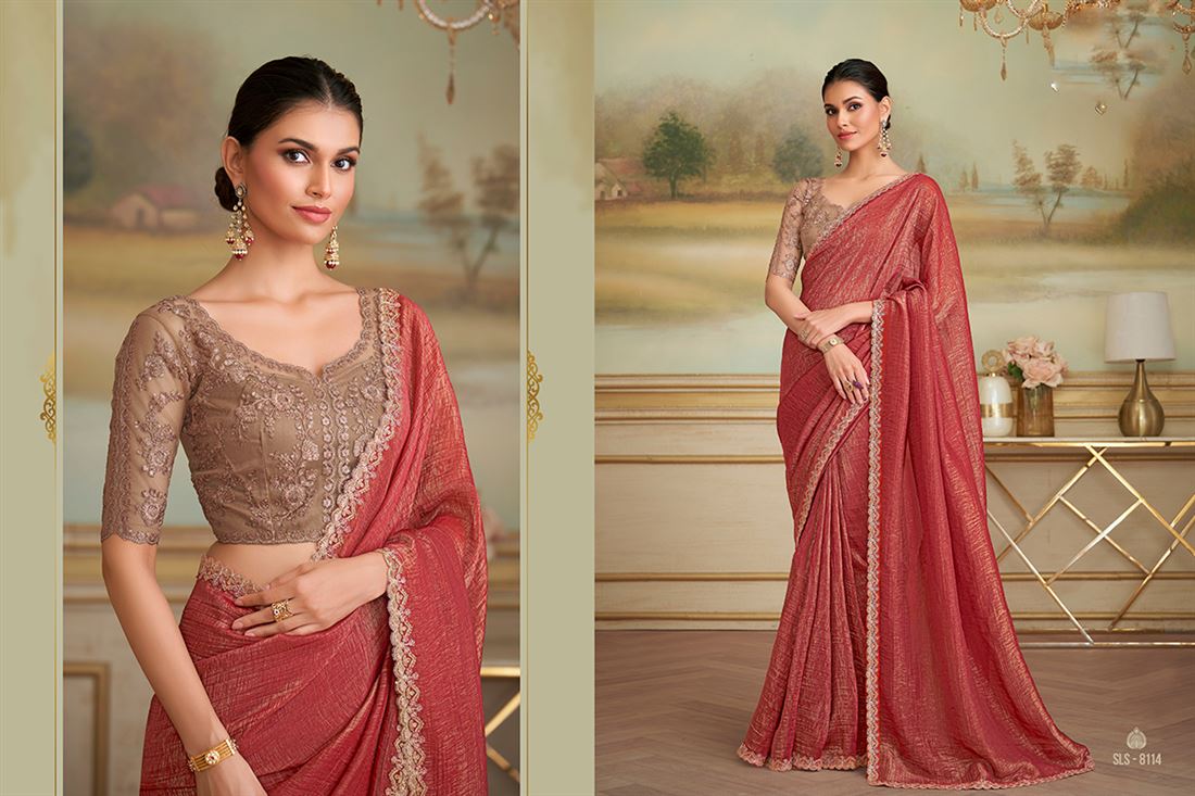 Fashion that express your character. Fashion that states your purpose of existence. Kekee presents yet another enchanting collection of stunning designs and aesthetic work this ceremonial season to flourish your shrungar with this magnificent range of SALSA STYLE-5 SAREES. Additional 5% GST Applicable.