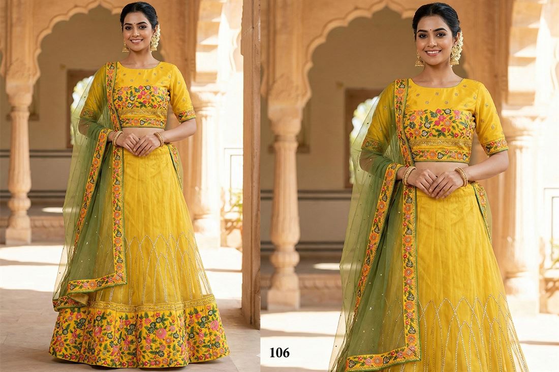 Fashion that express your character. Fashion that states your purpose of existence. Kekee presents yet another enchanting collection of stunning designs and aesthetic work this ceremonial season to flourish your shrungar with this magnificent range of Fashion Mantra Lehenga Collection. GST EXTRA.