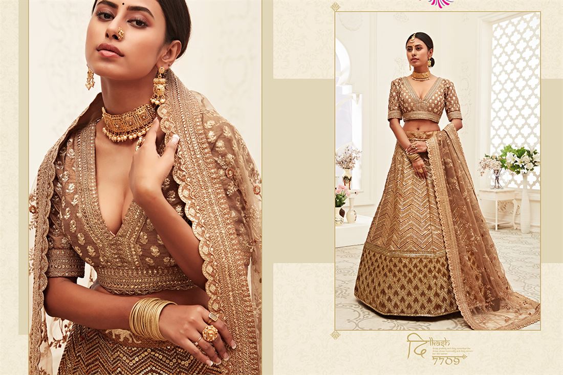 Fashion that express your character. Fashion that states your purpose of existence. Kekee presents yet another enchanting collection of stunning designs and aesthetic work this ceremonial season to flourish your shrungar with this magnificent range of TRADITIONAL VOL-2 Lehenga Collection. Additional 12% GST Applicable.