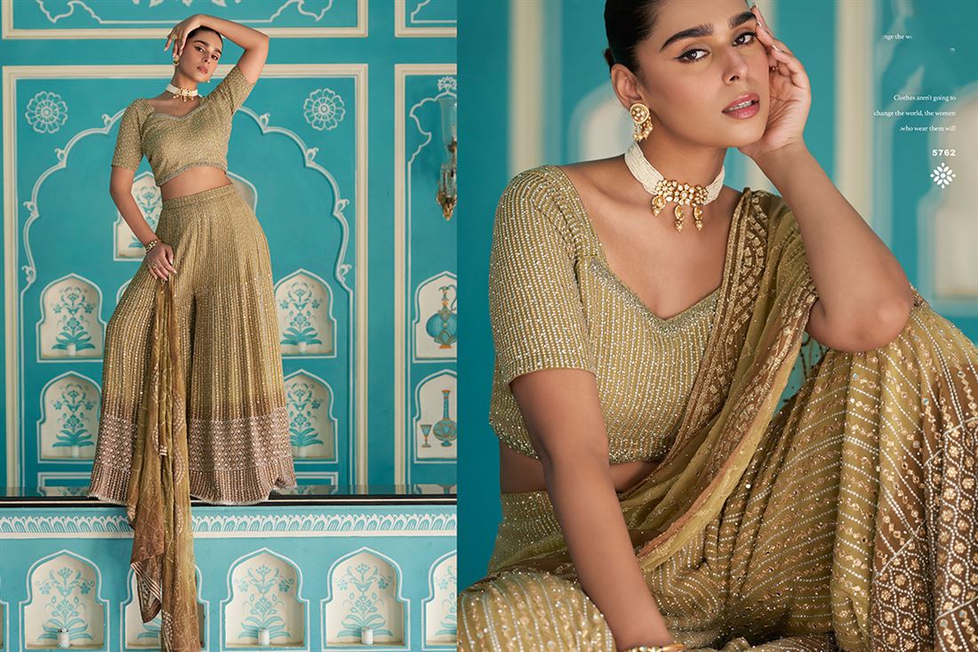 | Bottoms | REAL PREMIUM GEORGETTE ( FULL HEAVY LOOK FRONT AND BACK EMBROIDERED SIROSKI ZARKAN MIRROR WORK PLAZZO |