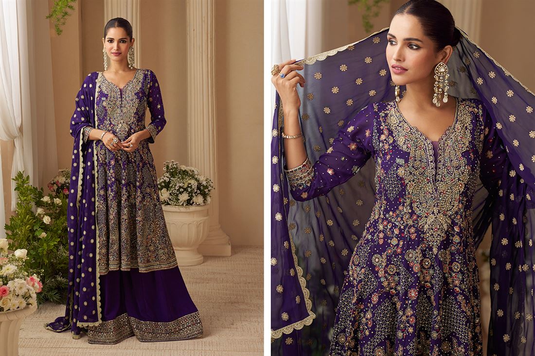 | Fabric | TOP/BOTTOM/DUPATTA :- PREMIUM REAL GEORGETTE ( FULL HEAVY LOOK EMBROIDERED SIROSKI ZARKAN TOP WITH PLAZOO AND EMBROIDERED DUPATTA ) |