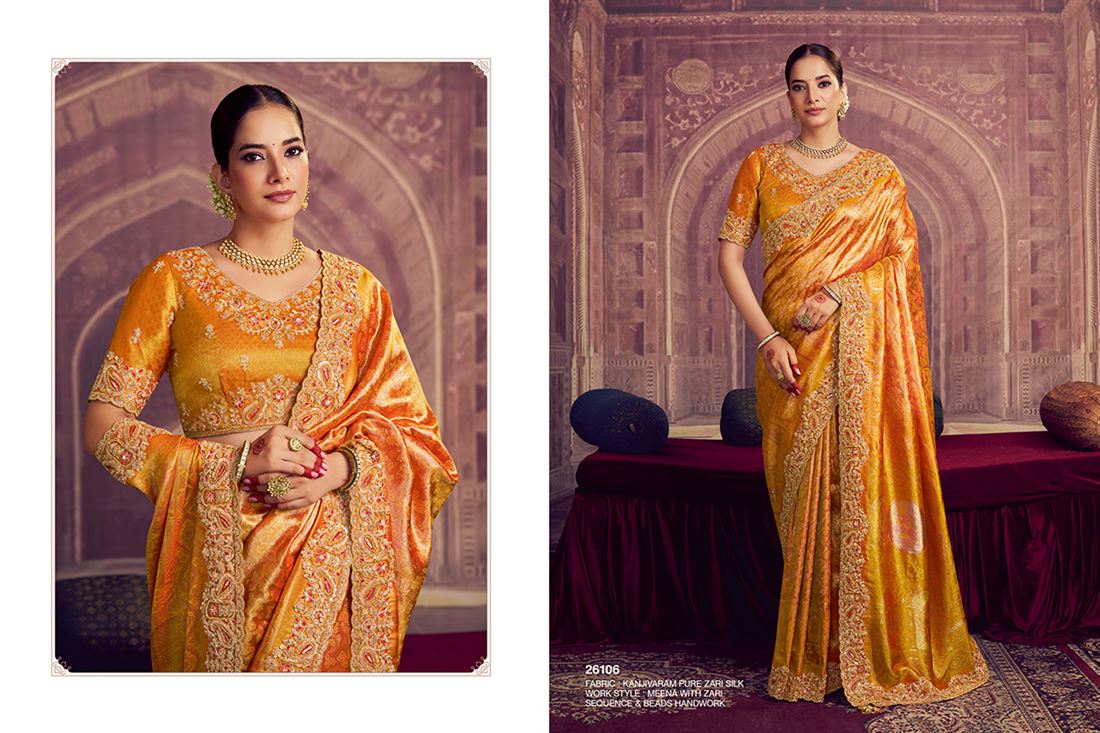 Fashion that express your character. Fashion that states your purpose of existence. Kekee presents yet another enchanting collection of stunning designs and aesthetic work this ceremonial season to flourish your shrungar with this magnificent range of AARADHYA DESIGNER SAREES COLLECTIONS. Additional 5% GST Applicable.