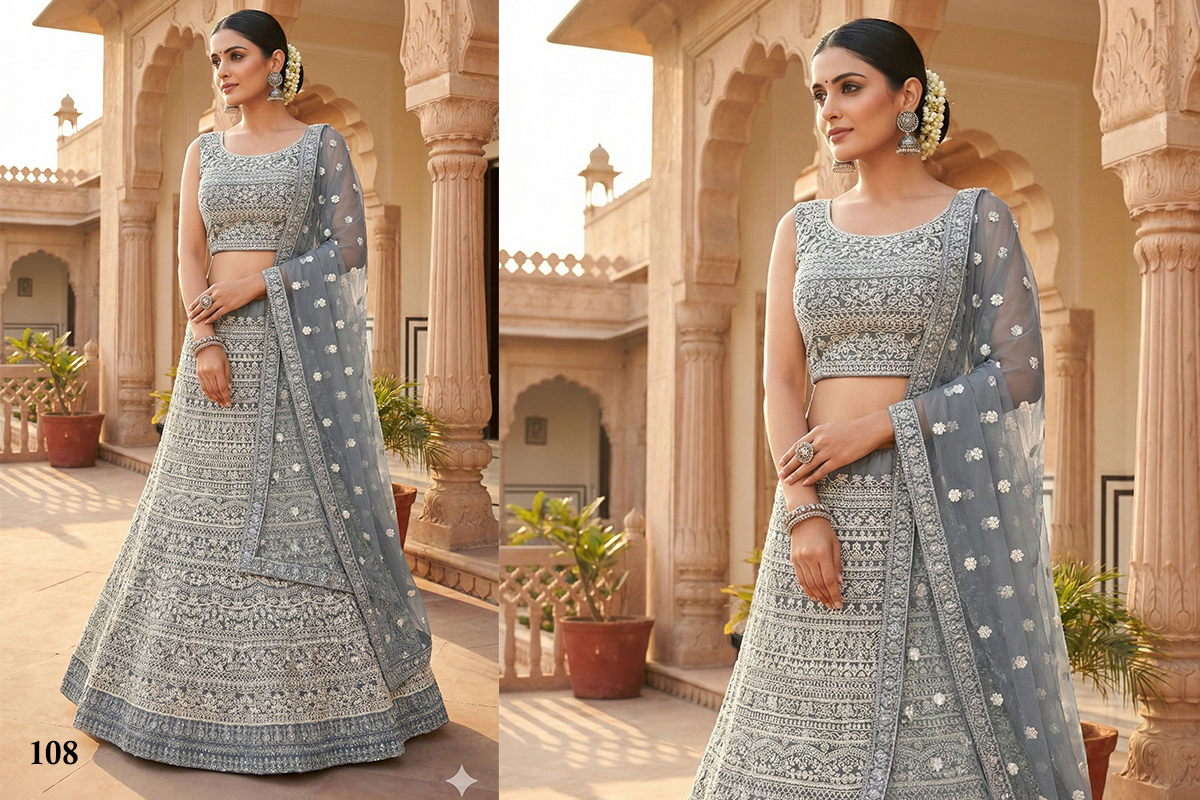 Fashion that express your character. Fashion that states your purpose of existence. Kekee presents yet another enchanting collection of stunning designs and aesthetic work this ceremonial season to flourish your shrungar with this magnificent range of Fashion Mantra Lehenga Collection. GST EXTRA.